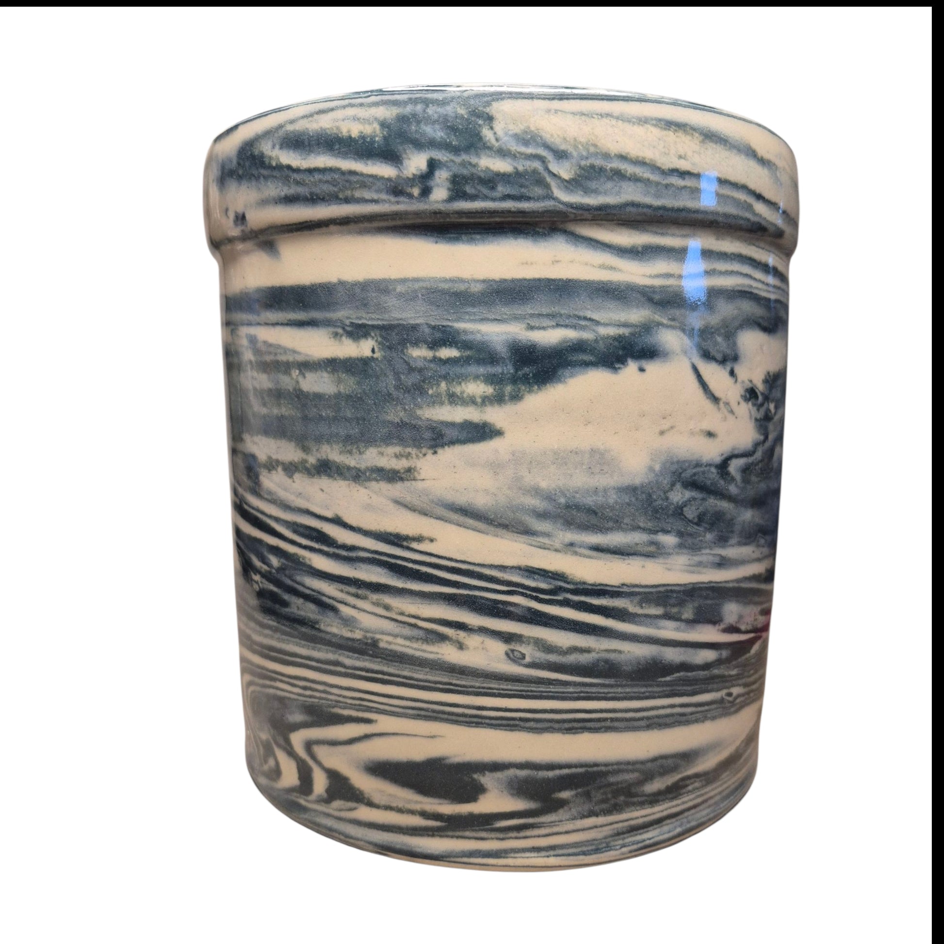 Handcrafted from stained porcelain in striking turquoise and white, this large utensil crock showcases a beautiful marbled finish that makes each piece truly one-of-a-kind. Perfect for organizing kitchen essentials while adding artisanal charm to your countertop, this functional piece celebrates the natural variations that make handmade pottery special. A versatile addition to any kitchen that values craftsmanship and individuality.