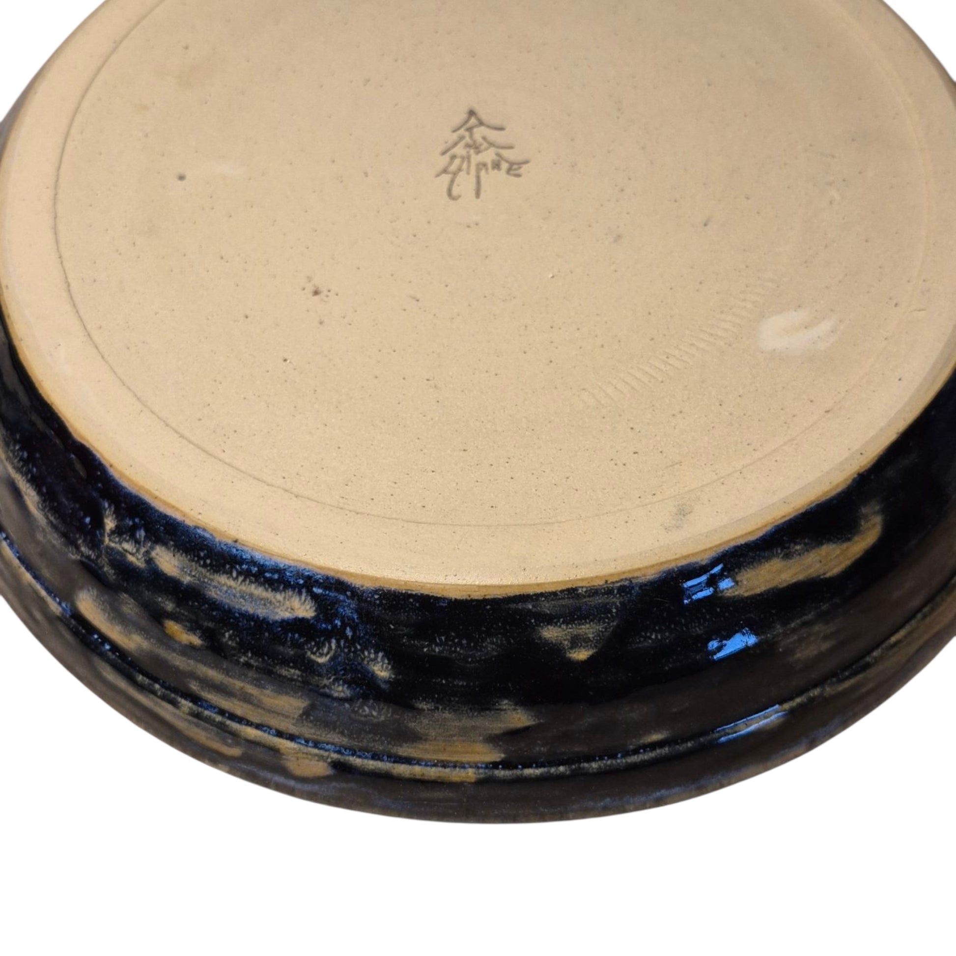 This handcrafted serving bowl brings artisanal charm to your table with its distinctive blend of blues, browns, and creams. Each piece is truly one of a kind, showcasing the natural variations that make handmade pottery special. Perfect for serving, displaying, or simply admiring as functional art in your home. Because all of these glazez are runners, the outside of this piece is quite simple. (see picture)